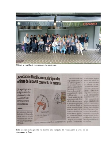 Al final la comida de clausura con los asistentes. Esta asociación ha puesto en marcha una campaña de recaudación a favor de las víctimas de la Dana