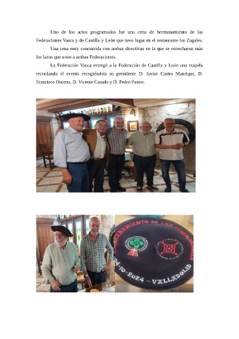 Federaciones Vasca y de Castilla y León que tuvo lugar en el restaurante los Zagales.