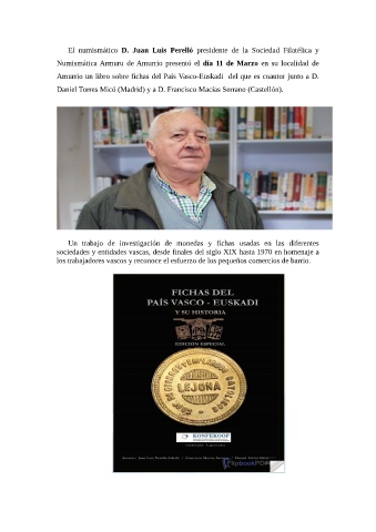 Numismática Armuru de Amurrio presentó el día 11 de Marzo en su localidad de