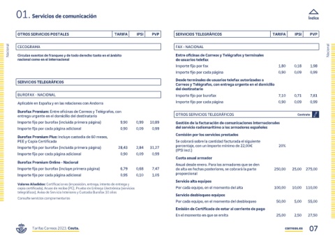 Tarifas Correos 2023. Ceuta. correos.es 07