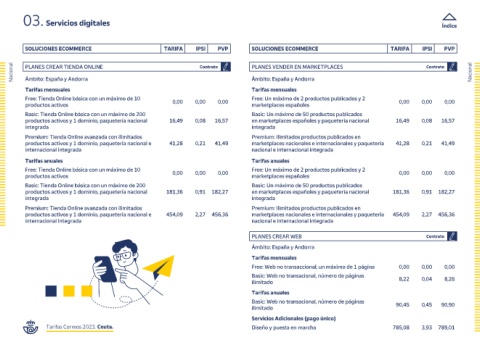 Tarifas Correos 2023. Ceuta. Diseño y puesta en marcha 785,08 correos.es 789,01