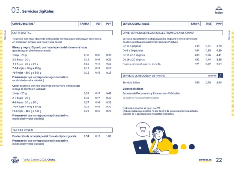 Tarifas Correos 2023. Ceuta. correos.es 22