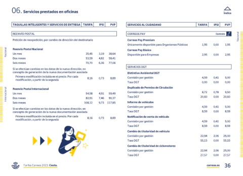 Tarifas Correos 2023. Ceuta. correos.es 36