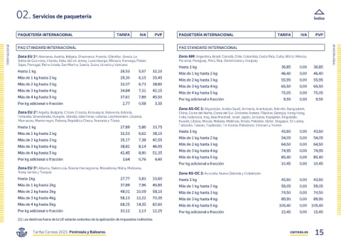Tarifas Correos 2023. Península y Baleares. correos.es 15