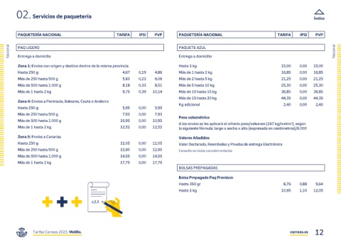 Tarifas Correos 2023. Melilla. correos.es 12
