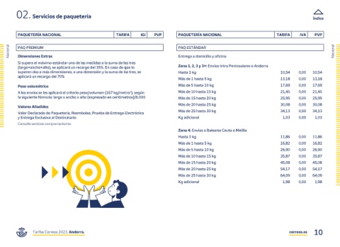 Tarifas Correos 2023. Andorra. correos.es 10