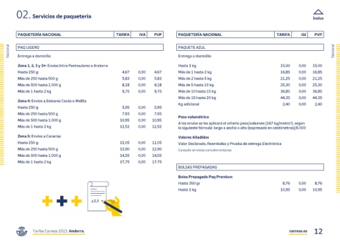 Tarifas Correos 2023. Andorra. correos.es 12