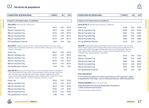 Tarifas Correos 2023. Andorra. correos.es 17
