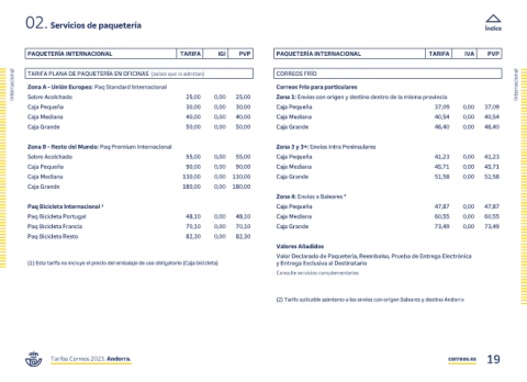 Tarifas Correos 2023. Andorra. correos.es 19