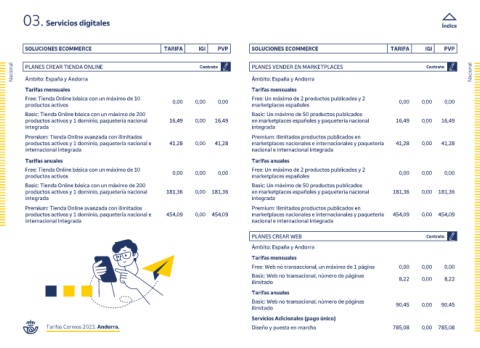 Tarifas Correos 2023. Andorra. Diseño y puesta en marcha 785,08 correos.es 785,08
