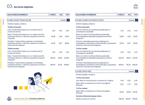 Tarifas Correos 2023. Península y Baleares. Diseño y puesta en marcha 785,08 correos.es 949,95