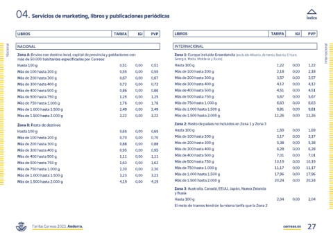 Tarifas Correos 2023. Andorra. correos.es 27