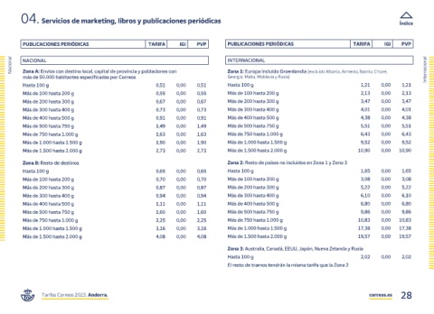 Tarifas Correos 2023. Andorra. correos.es 28