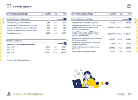 Tarifas Correos 2023. Península y Baleares. correos.es 22