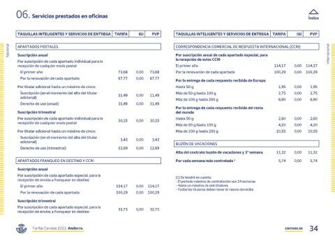 APARTADOS FRANQUEO EN DESTINO Y CCRI Por cada semana más contratada 1 5,74 0,00 5,74