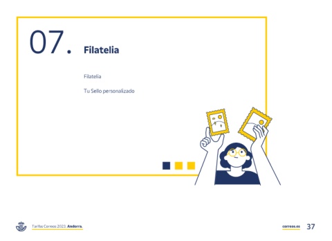 07 . Filatelia Filatelia Tu Sello personalizado Tarifas Correos 2023 . Andorra. correos.es 37