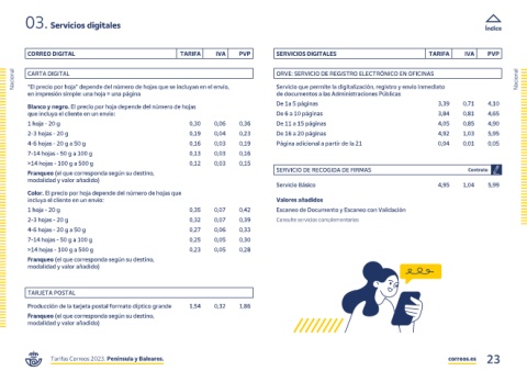Tarifas Correos 2023. Península y Baleares. correos.es 23