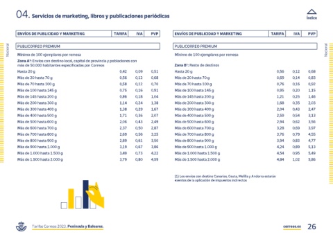 Tarifas Correos 2023. Península y Baleares. correos.es 26