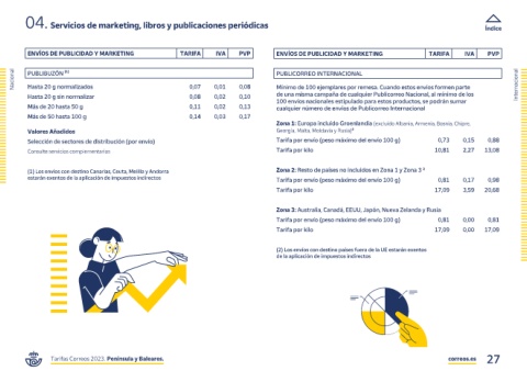 Tarifas Correos 2023. Península y Baleares. correos.es 27
