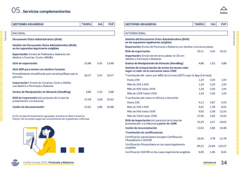 Tarifas Correos 2023. Península y Baleares. correos.es 34