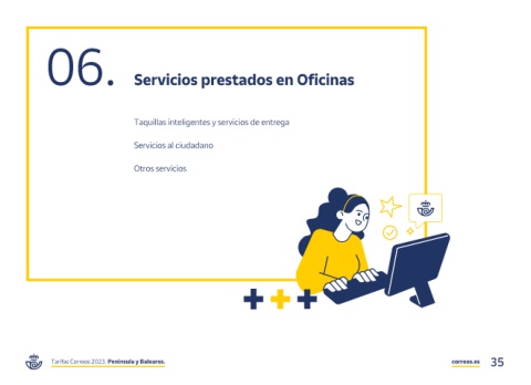06 . Servicios prestados en Oficinas Taquillas inteligentes y servicios de entrega Servicios al ciudadano Otros servicios Tarifas Correos 2023 . Península y Baleares. correos.es 35