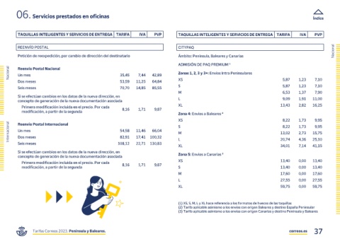 Tarifas Correos 2023. Península y Baleares. correos.es 37