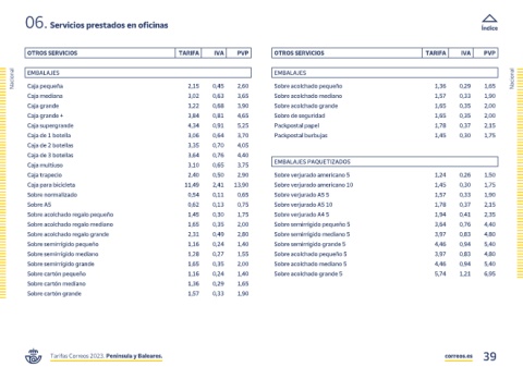 Tarifas Correos 2023. Península y Baleares. correos.es 39