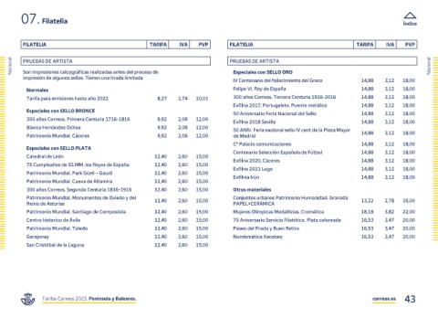 Tarifas Correos 2023. Península y Baleares. correos.es 43