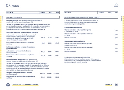Tarifas Correos 2023. Península y Baleares. correos.es 46