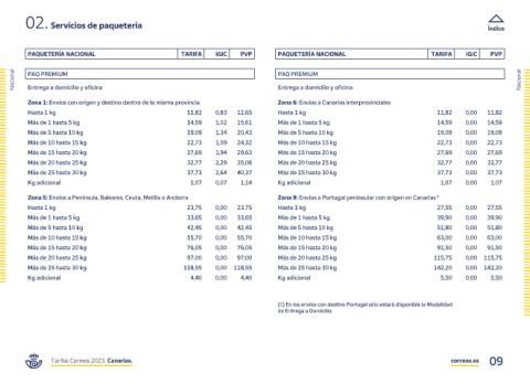 PAQUETERÍA NACIONAL TARIFA IGIC PVP PAQUETERÍA NACIONAL TARIFA IGIC PVP