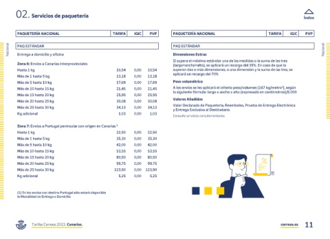 PAQUETERÍA NACIONAL TARIFA IGIC PVP PAQUETERÍA NACIONAL TARIFA IGIC PVP