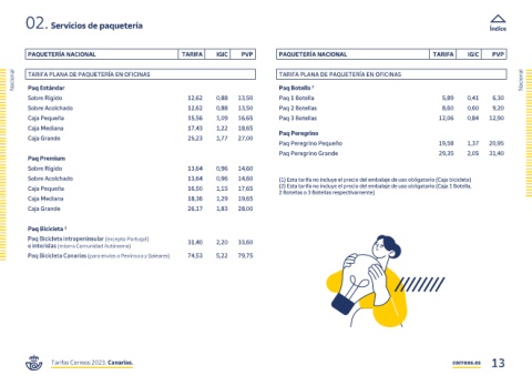 PAQUETERÍA NACIONAL TARIFA IGIC PVP PAQUETERÍA NACIONAL TARIFA IGIC PVP