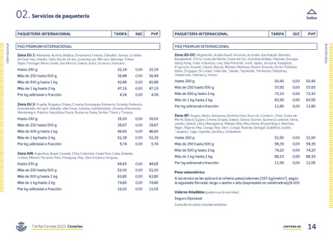 Tarifas Correos 2023. Canarias. correos.es 14