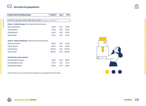 PAQUETERÍA INTERNACIONAL TARIFA IGIC PVP