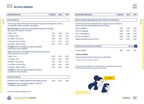 CORREO DIGITAL 1 TARIFA IGIC PVP SERVICIOS DIGITALES TARIFA IGIC PVP