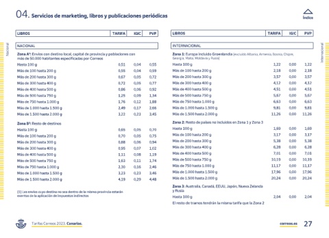 Tarifas Correos 2023. Canarias. correos.es 27