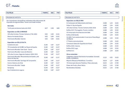 FILATELIA TARIFA IGIC PVP FILATELIA TARIFA IGIC PVP