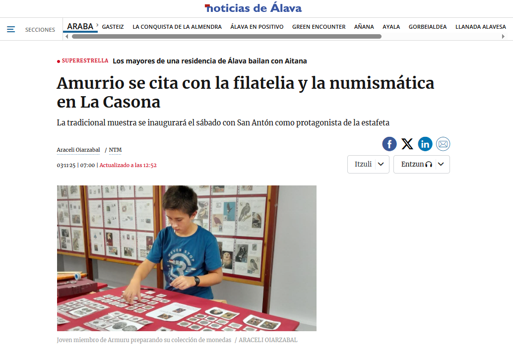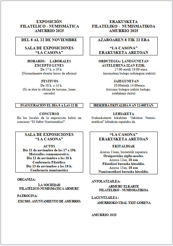 EXPOSICIÓN FILATÉLICA Y NUMISMÁTICA EN AMURRIO DEL 8 AL 22 DE NOVIEMBRE |